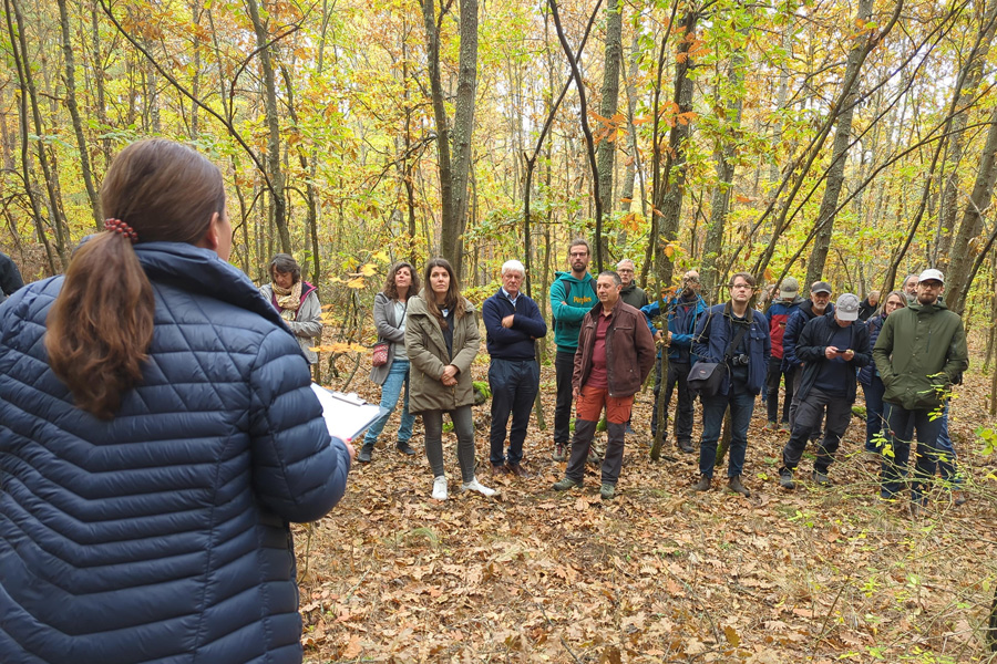 Meeting venues must have vast corridors, because a relevant part of the action happens outside meeting rooms. The Moskva hotel of Sofia, venue of the third OptFORESTS Annual meeting, offers just that: large, quiet corridors with deep, comfortable sofas. That’s where an intense meeting around project’s Task 2.3 took place, between scientists Ben Brachi (INRAE), task leader, Christian Rellstab (WSL), Ivan Scotti (INRAE), and Andrea Modica, freshly hired as a post-doc by WSL, and formerly a PhD student at INRAE (yes, it’s a small world). The meeting was kind of foundational: all the research themes, that should keep these fellows (plus some others, including an additional postdoc to be hired soon) busy for the next few years, were laid out. The goals are ambitious: to start with, a detailed analysis of the genotype-environment relationships in white oaks, that will help identify loci contributing to adaptation to environment: climate change looms large in scientists’ minds, and the quatuor is hoping to find signals of adaptive response to it. This will—of course—require the analysis of a deluge of genomic data, but the team has another ace up the sleeve: by looking at how growth rings reacted to past droughts, they will be able to check whether the trees carrying adaptive genes are also those which showed better resilience to past stress—an elegant validation of the adaptive role of genes.